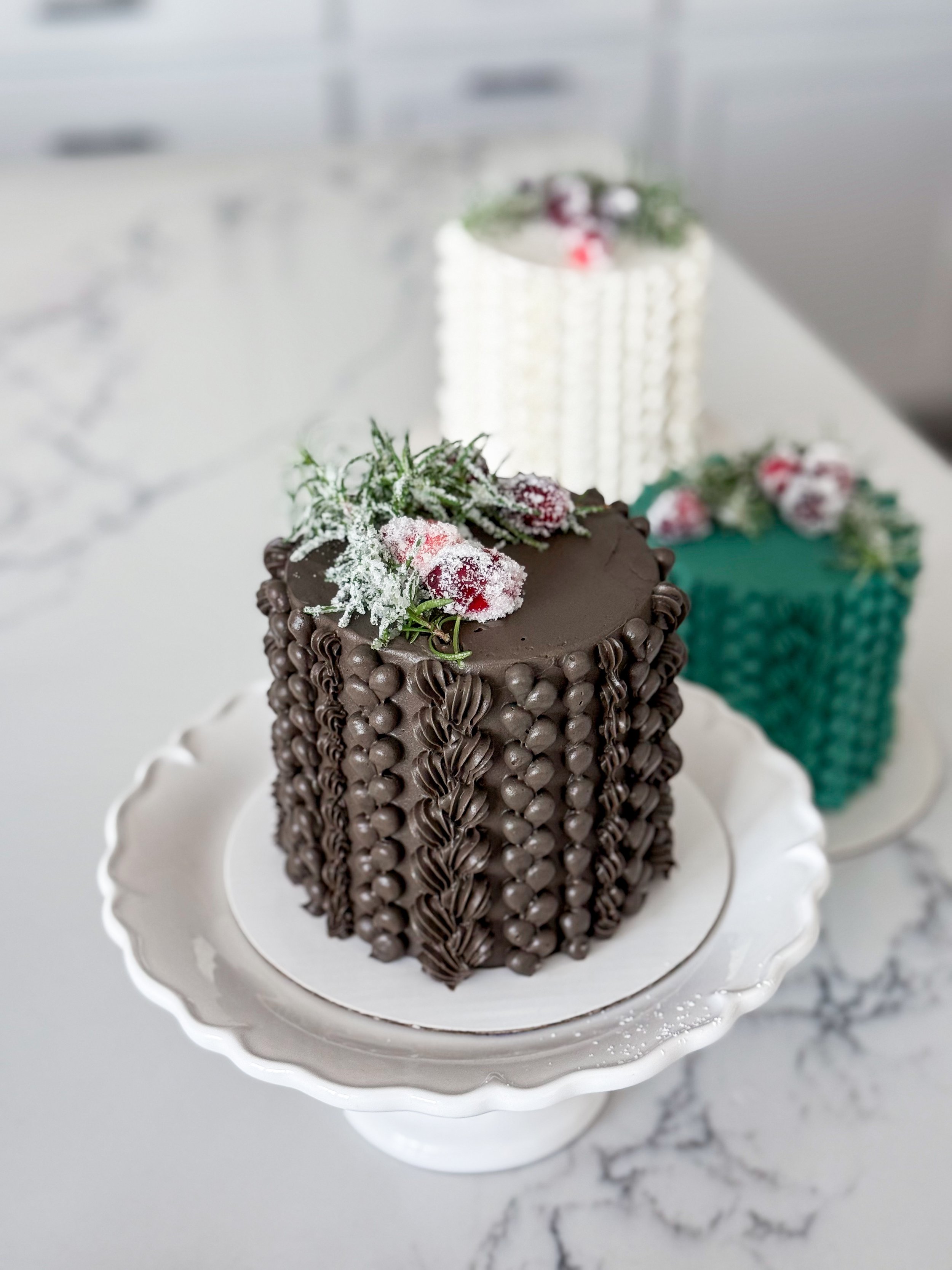 Cake Color: YOU decide which color you’d like to decorate with! Choose between bright white, emerald green, or chocolate brown (my personal favorite).